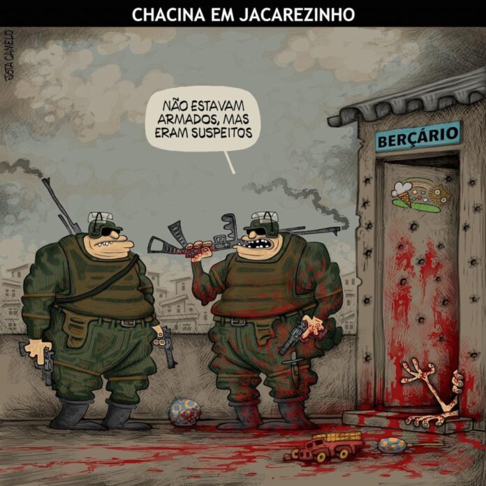 Charges do Dia CHACINA EM JACAREZINHO Por O Ralho - 13 de maio de 2021 0 193 FacebookTwitterPinterestWhatsApp Charge O RALHO>Jota Camelo