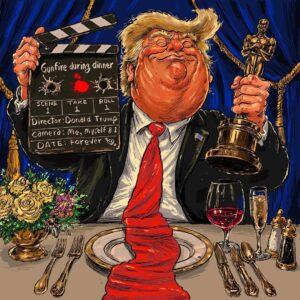 Quem teria a coragem de fazer essa pergunta durante a festa de gala em que jornalistas confraternizavam com o maior gângster mundial? Quem, entre os que se jogaram ao chão no banquete para jornalistas, perguntariam a Trump: você é pedófilo e estuprador?