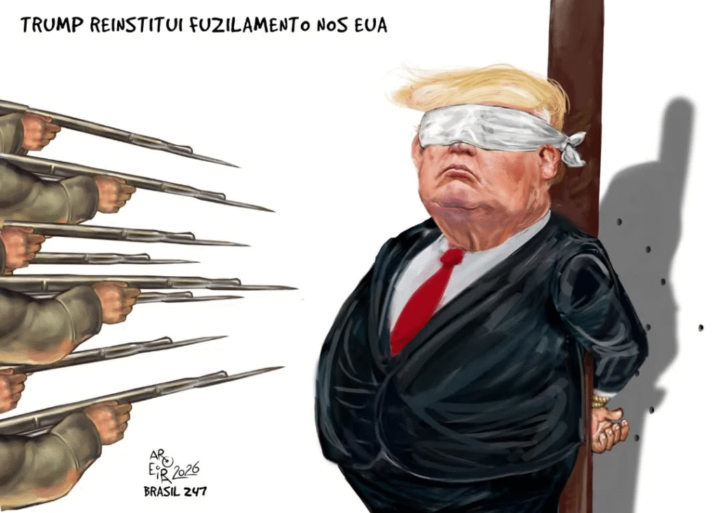 Um jornalismo de corporações de mídia americanas e de outros países que também continua, por falta de coragem, manchando as próprias mãos com o sangue de crianças, mulheres e idosos assassinados pelos foguetes de Trump e por soldados de cúmplices a seu mando. E o doente, segundo Trump, é o atirador.